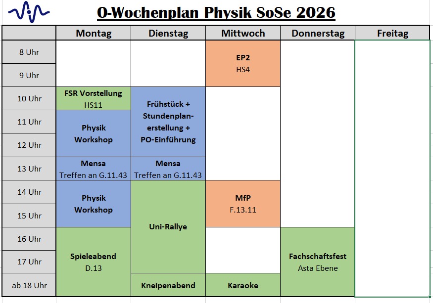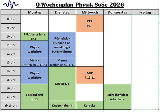 Der Plan für die O-Woche SoSe26 ist hier abgebildet. Mit einem Klick aufs Bild vergrößert sich die Ansicht.